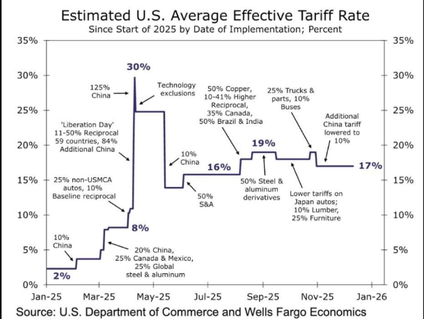 This chart highlights why trade policy remains an important undercurrent for markets. Shifts in effective tariff rates influence inflation, corporate input costs, and profit margins, with downstream effects on earnings, interest rates, and market leadership